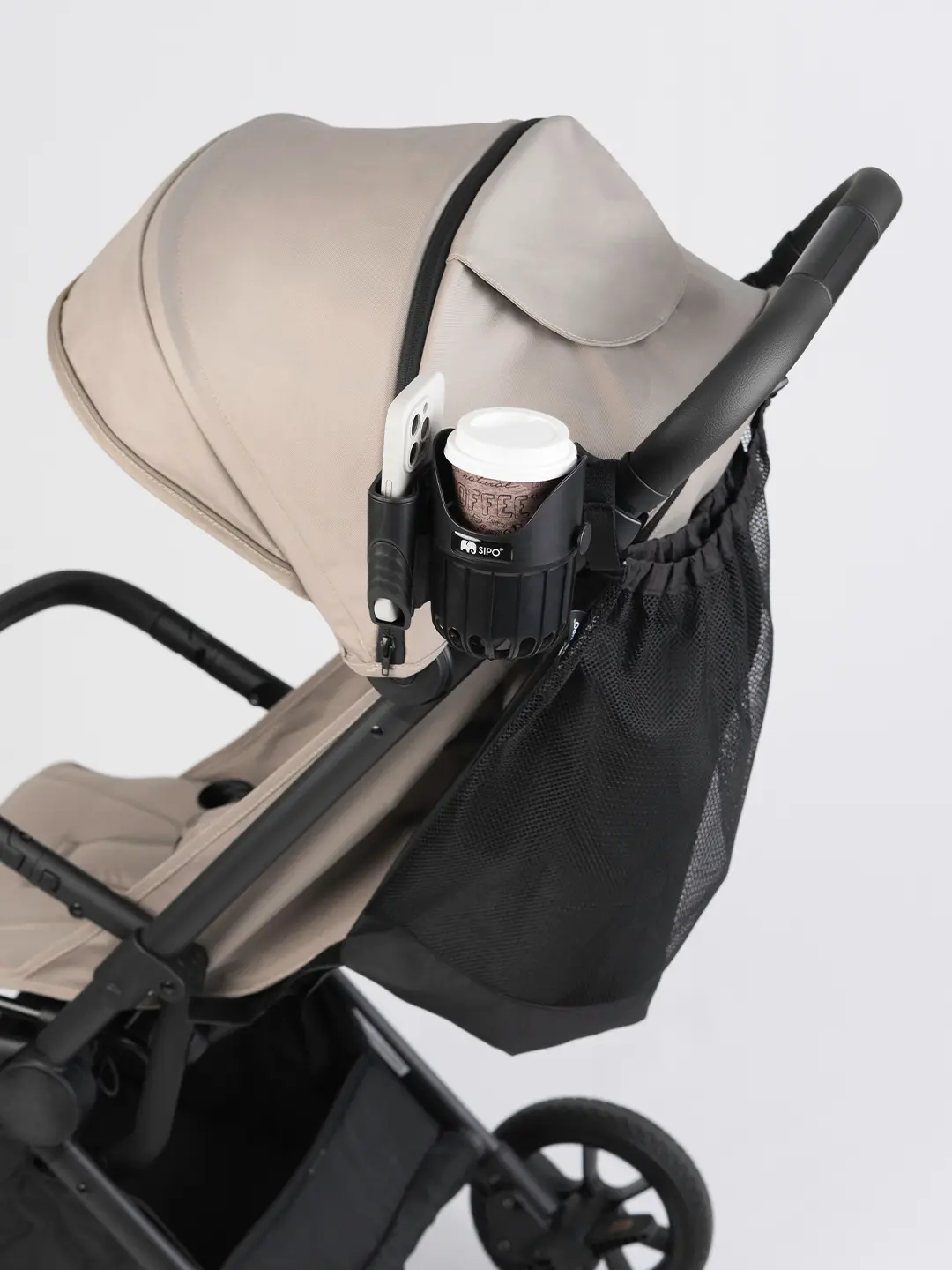 The Universal 2-in-1 Cup and Phone Holder by SIPO is the perfect stroller accessory for modern parents. It keeps your drink and smartphone securely in place and within easy reach during every walk. Sleek, practical, and compatible with most strollers – convenience has never looked this good.