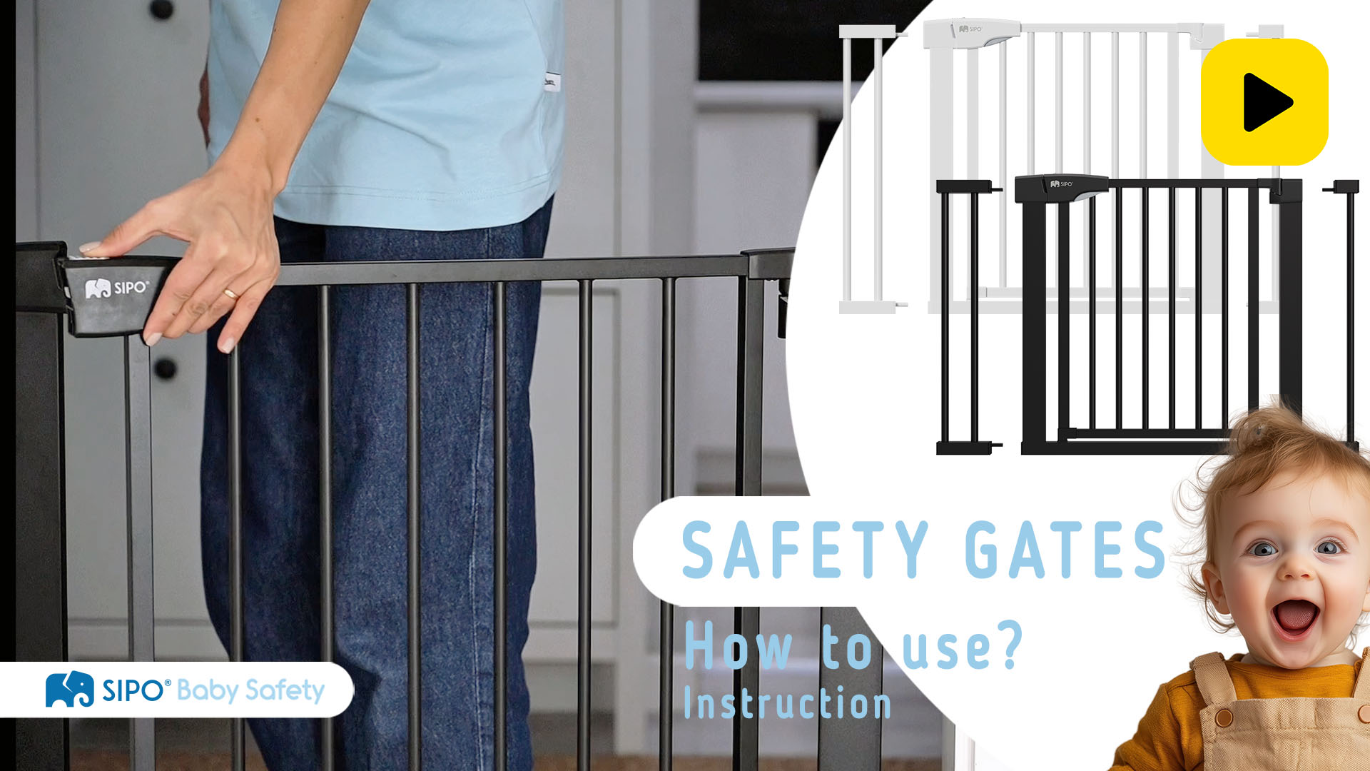 Ensure peace of mind and a safe environment at home with the SIPO safety gate for children and pets. Designed with active little explorers and curious pets in mind, this gate offers a secure and effective solution to restrict access to staircases, kitchens, or other potentially hazardous areas. As babies begin to crawl, climb, and walk, every corner of your home becomes a new adventure zone. That’s why having a safety gate for stairs is essential – to let your child play freely while minimizing the risk of falls or accidents.