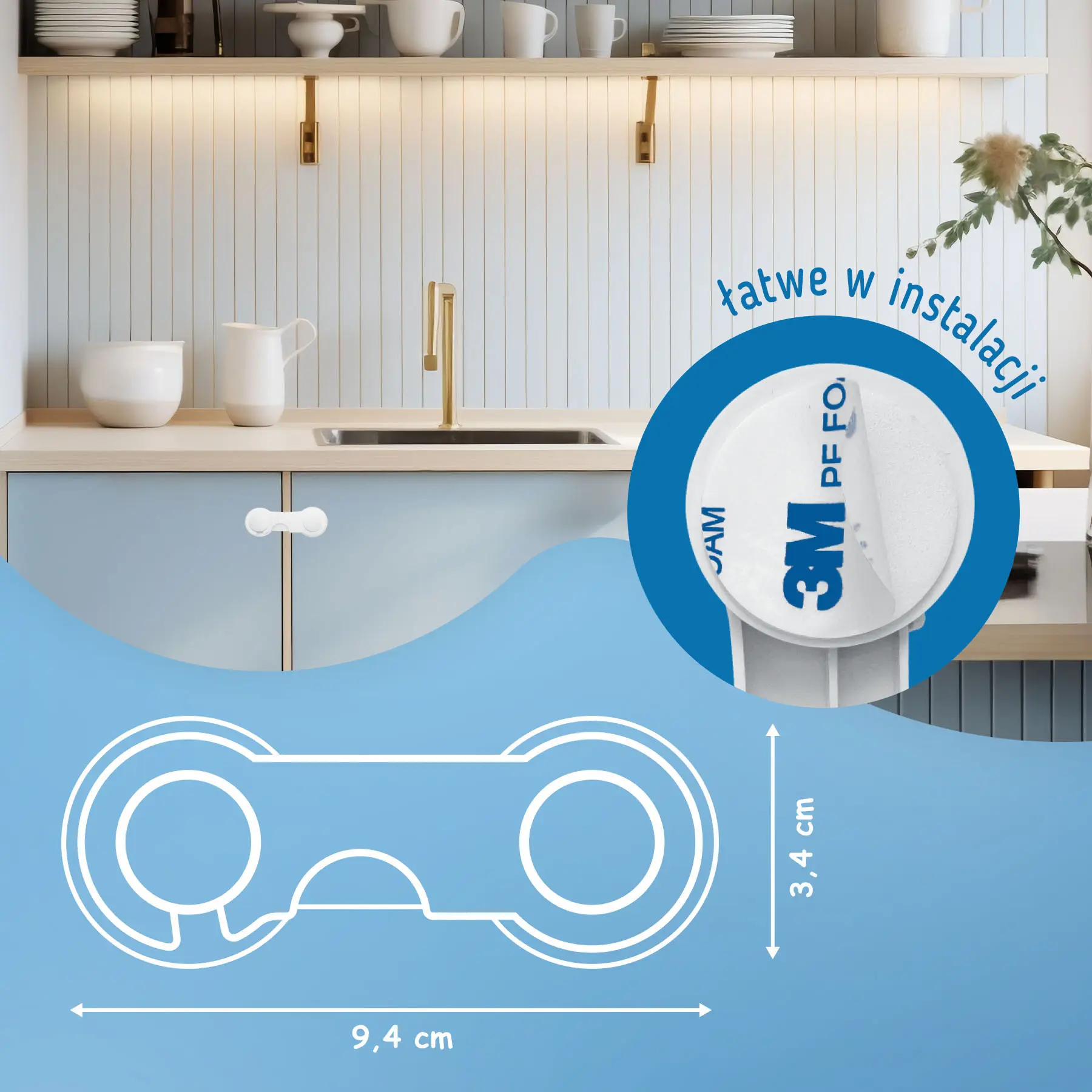 Każdy rodzic wie, jak duża jest ciekawość dzieci i jak chętnie zaglądają one do miejsc, które powinny być dla nich niedostępne. Szafki z detergentami, szuflady z ostrymi sztućcami czy drzwiczki łazienkowe mogą stwarzać realne zagrożenie dla malucha. Zabezpieczenia do szuflad i szaf na zatrzask SIPO to prosty, a zarazem niezwykle skuteczny sposób, aby zapewnić dziecku bezpieczeństwo i spokój w codziennym życiu domowym. Blokady zostały zaprojektowane tak, aby były wygodne dla dorosłych, a jednocześnie niemożliwe do samodzielnego otwarcia przez dziecko. Dzięki mechanizmowi zatrzaskowemu rodzic jednym ruchem może odblokować szafkę lub szufladę, podczas gdy maluch nie ma szans poradzić sobie z ich obsługą. Neutralny, biały kolor sprawia, że zabezpieczenia są niemal niewidoczne i świetnie wtapiają się w wystrój wnętrz, niezależnie od stylu aranżacji. Montaż jest szybki i bezinwazyjny – blokady posiadają fabrycznie nałożoną taśmę 3M, która zapewnia trwałe i stabilne mocowanie bez wiercenia czy użycia narzędzi. Dzięki temu produkt sprawdzi się w każdym domu, a w razie potrzeby można go zdemontować bez pozostawiania śladów na meblach.
